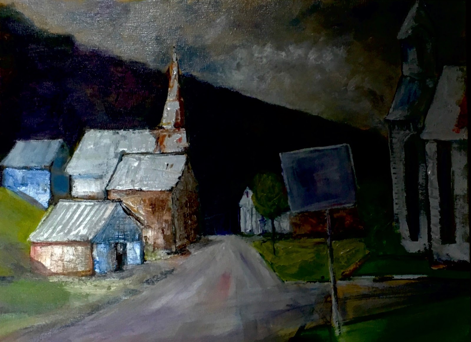 The other day I pulled out a 20 year old sketch book, and decided to do an oil sketch from one of them; a view of the center of Huntington, MA.....